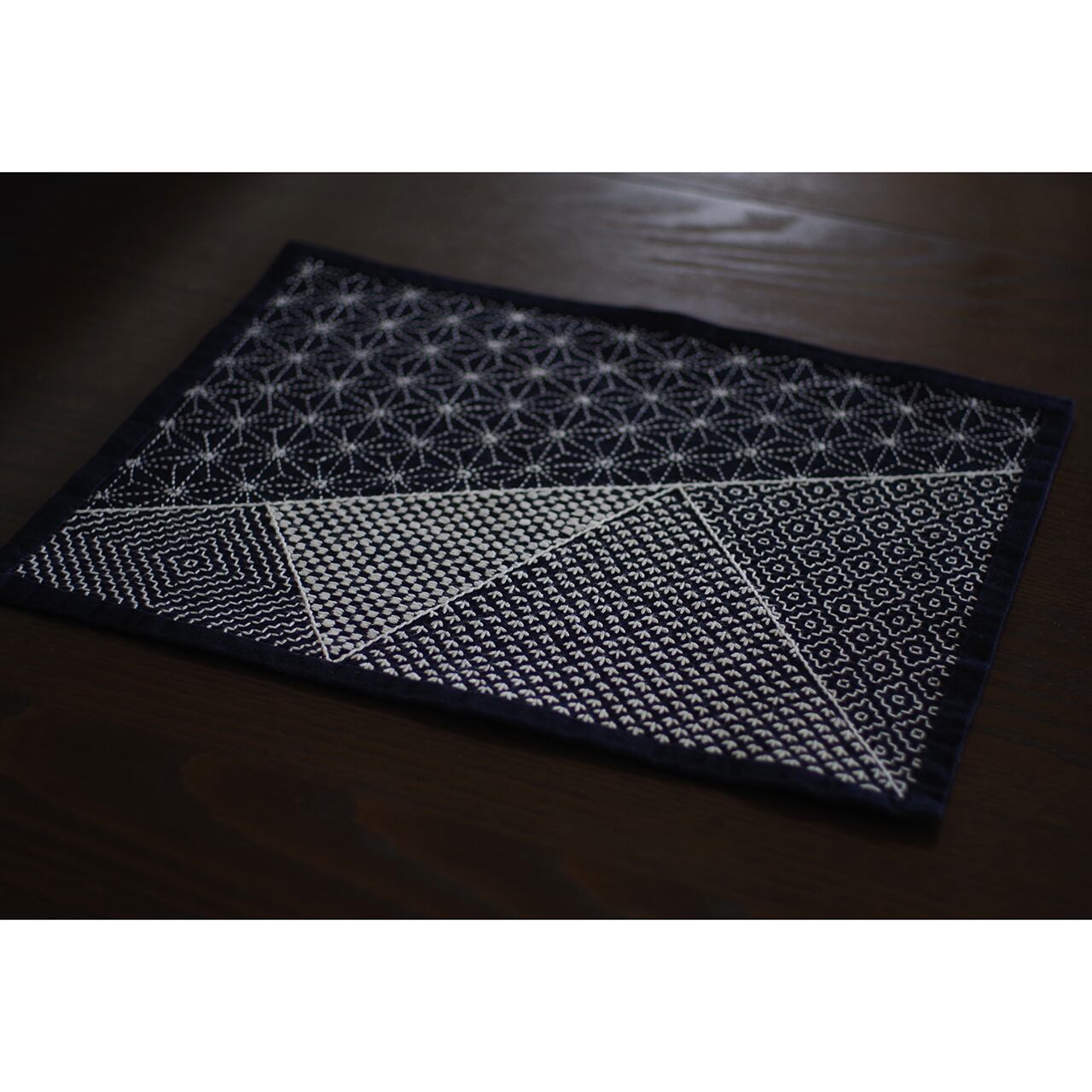 藍染の木綿に刺し子をした額縁仕立てのマットです。